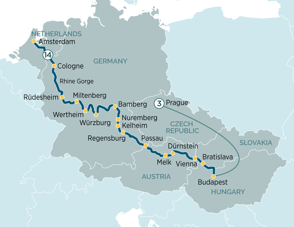 Later, return for an afternoon spent peacefully cruising through the heart of Europe.