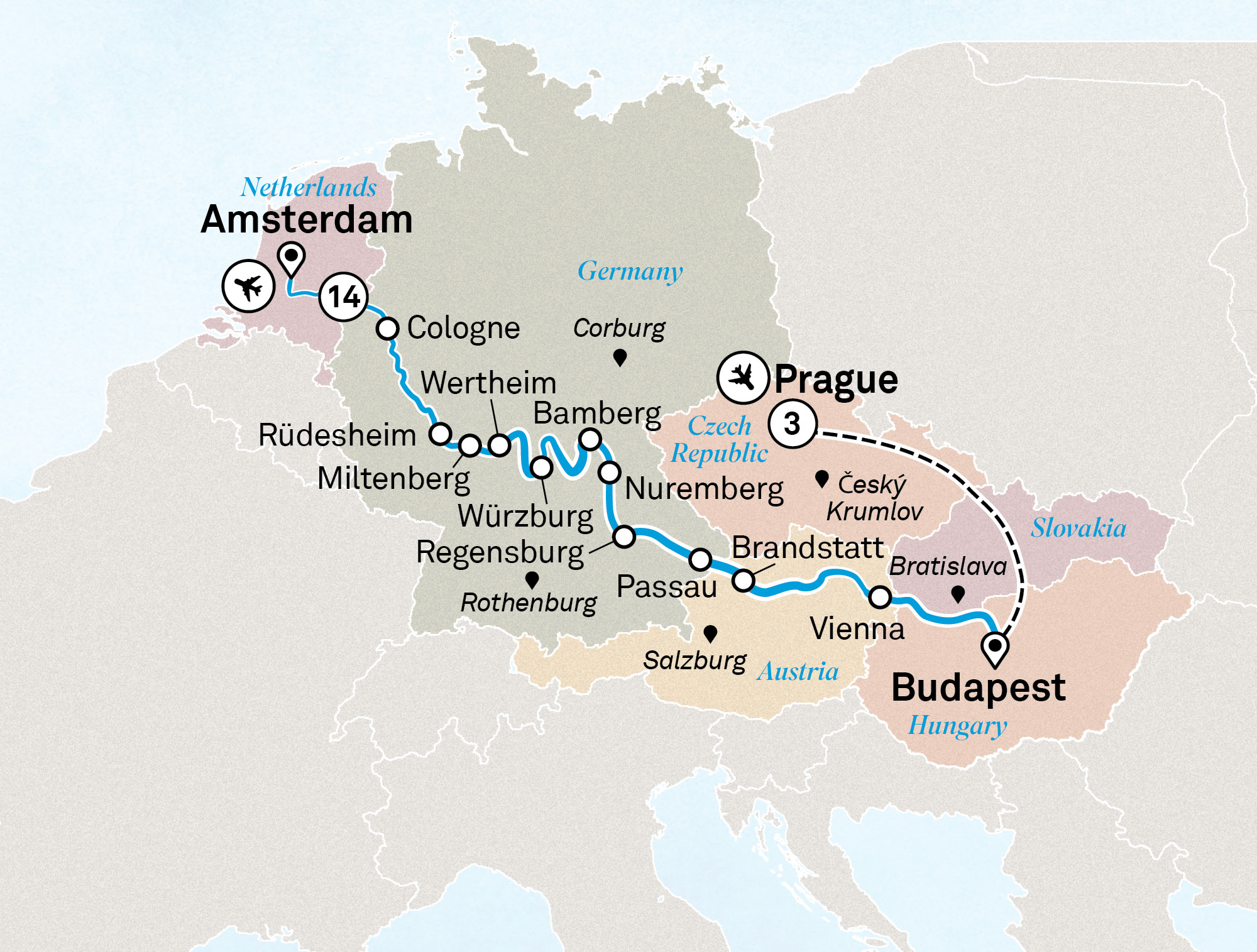 Great trip but way too much busing between Passau and Regensberg and Nuremberg. They should have offered hotels. 6.5 hours round trip to Nuremberg and 4 to Regensberg.