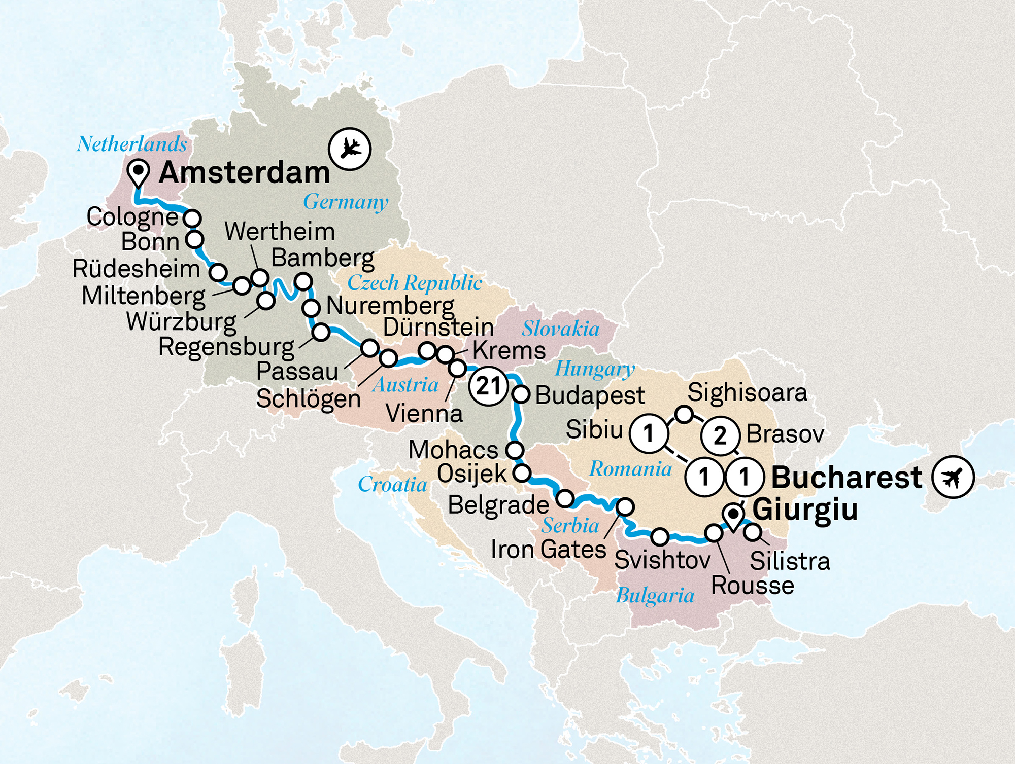Meals: Breakfast, Lunch, Dinner - Day 22Giurgiu > BucharestMon, Jun 14, 2027