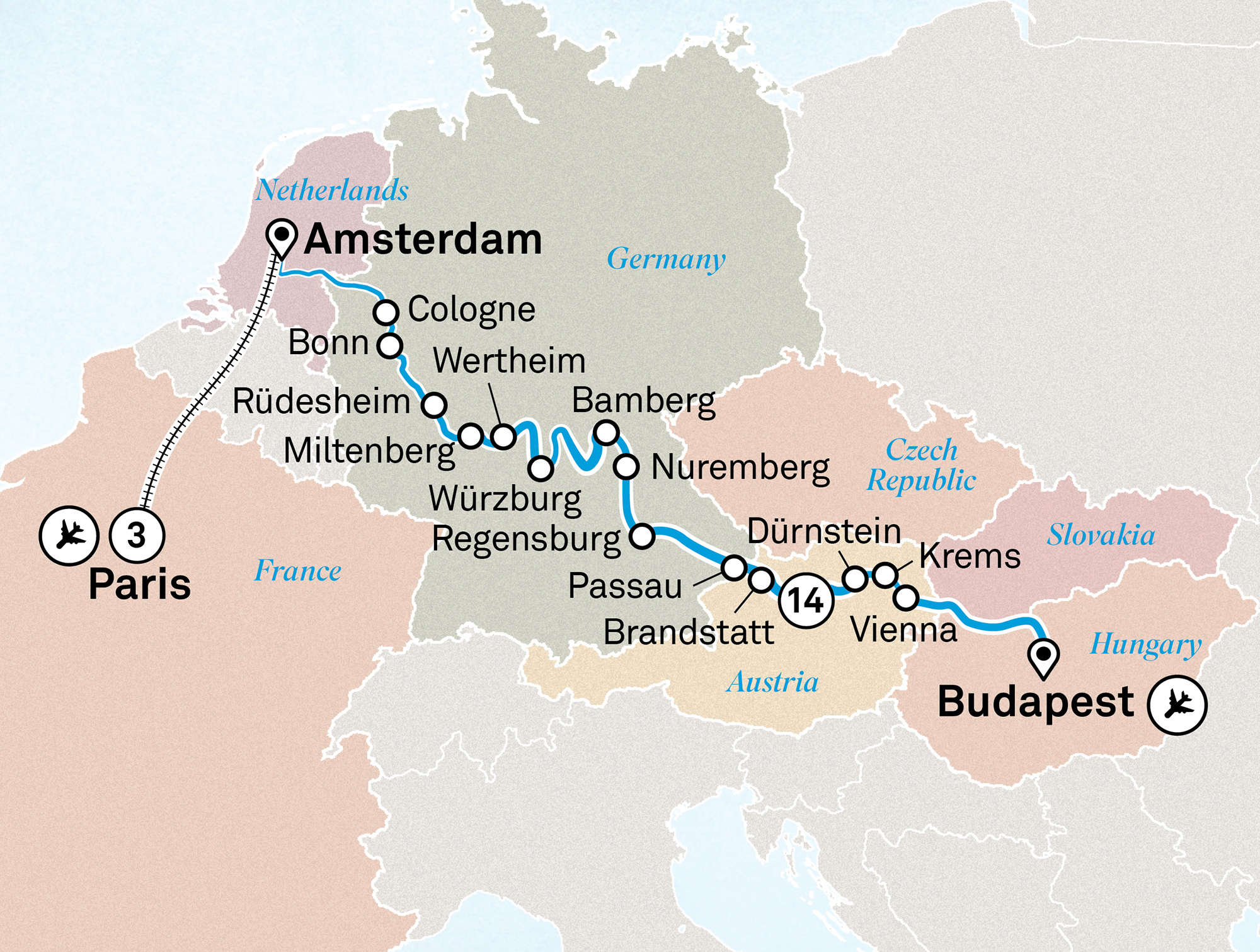 Great trip but way too much busing between Passau and Regensberg and Nuremberg. They should have offered hotels. 6.5 hours round trip to Nuremberg and 4 to Regensberg.