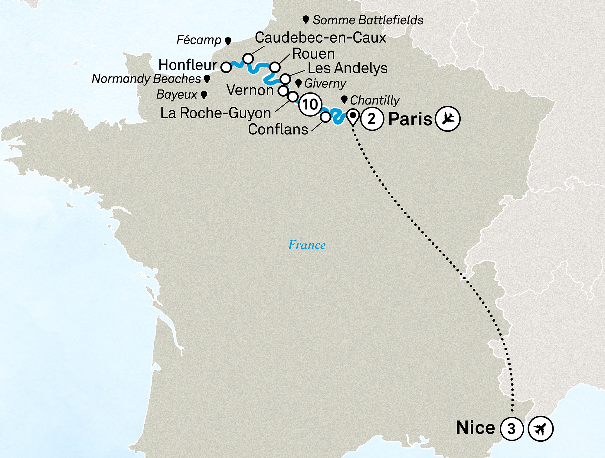 Farewell your Scenic Space-Ship and board your included flight from Paris to Nice.