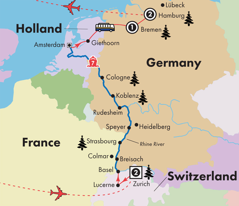 • Experience the charm of the world-famous Christmas markets in Strasbourg, Koblenz, Cologne, Bremen and Hamburg