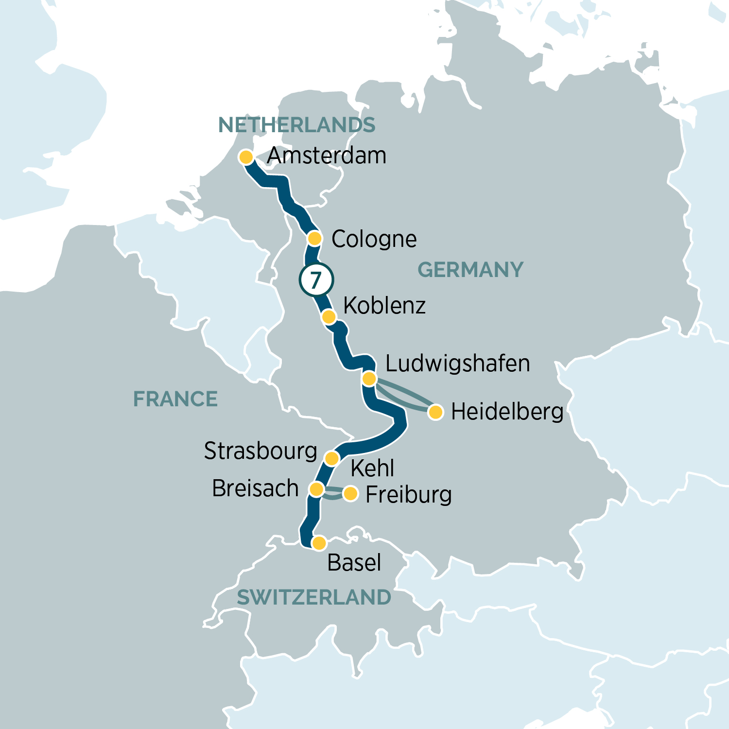 Relax on board this morning as you sail towards Ludwigshafen, following the meandering Rhine River and passing the confluence of the Rhine and Neckar. Travel by coach to Heidelberg, where you’ll have the opportunity to learn about how it became a UNESCO City of Literature, having inspired the likes of Mark Twain and William Turner with its historical setting.