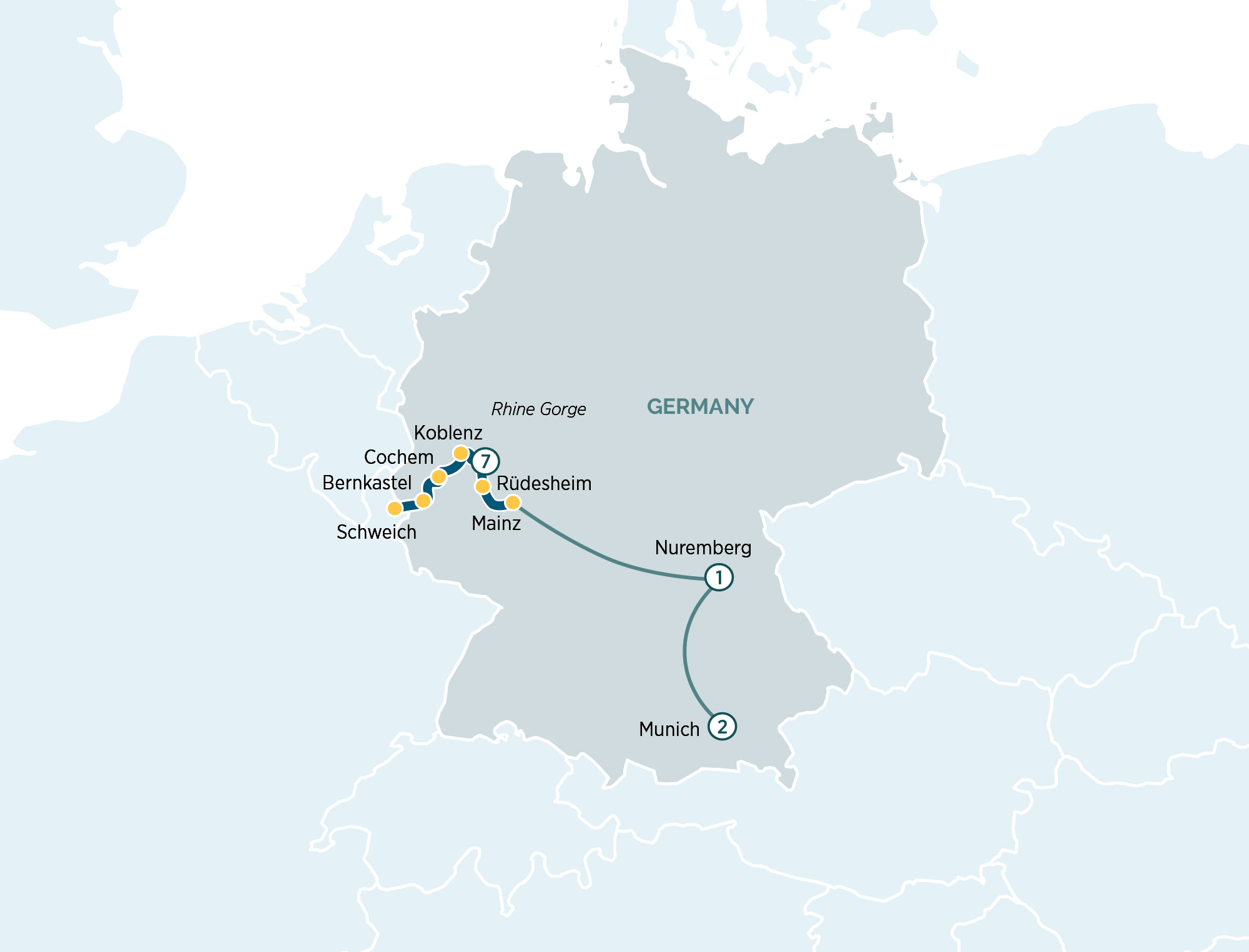Meals: Breakfast, Lunch, Dinner - Day 8Mainz – NurembergSun, Jul 04, 2027