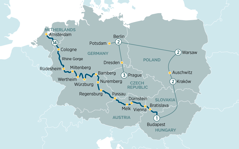 After breakfast, it’s time to say farewell to your fellow guests and depart your Star-Ship for your transfer to the airport, taking memories of the postcard-worthy Rhine Gorge and idyllic Dutch countryside with you.