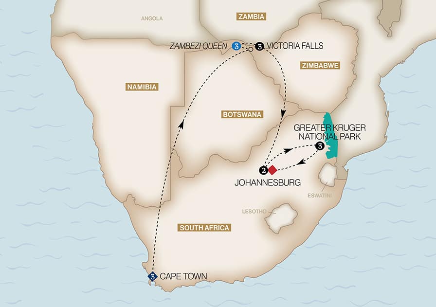 - Day 1Tue, Oct 13, 2026ARRIVE IN CAPE TOWN, SOUTH AFRICA. Situated amidst majestic mountains and lined withpristine beaches, Cape Town has a rich cultural heritage with extraordinary attractions. After being greeted at theairport by an AmaWaterways representative, transfer to your historic hotel with its lush gardens and Table Mountainas a backdrop. Get to know your tour director and fellow travelers at a special Welcome Reception. (WR)