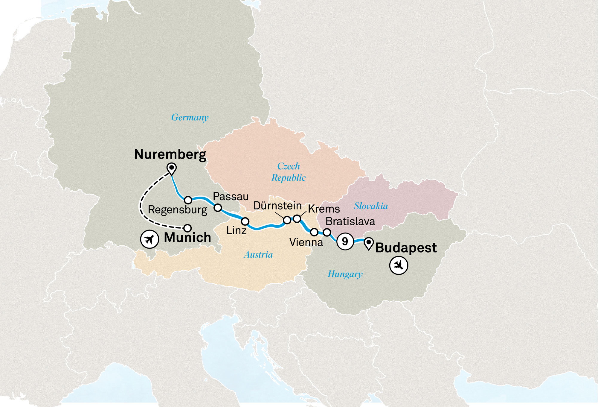 From Munich, Germany to Budapest, Hungary