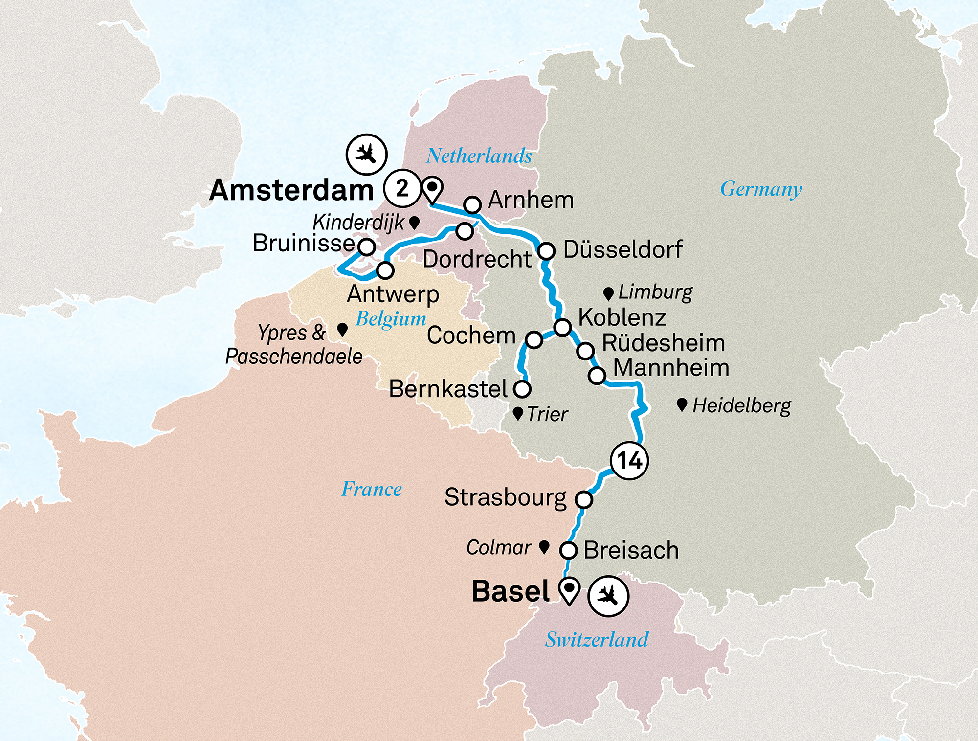 Your cruise concludes this morning in Basel. Enjoy one final breakfast on board, then disembark and transfer to Basel Airport, taking with you lifelong memories of a remarkable journey across a continent.