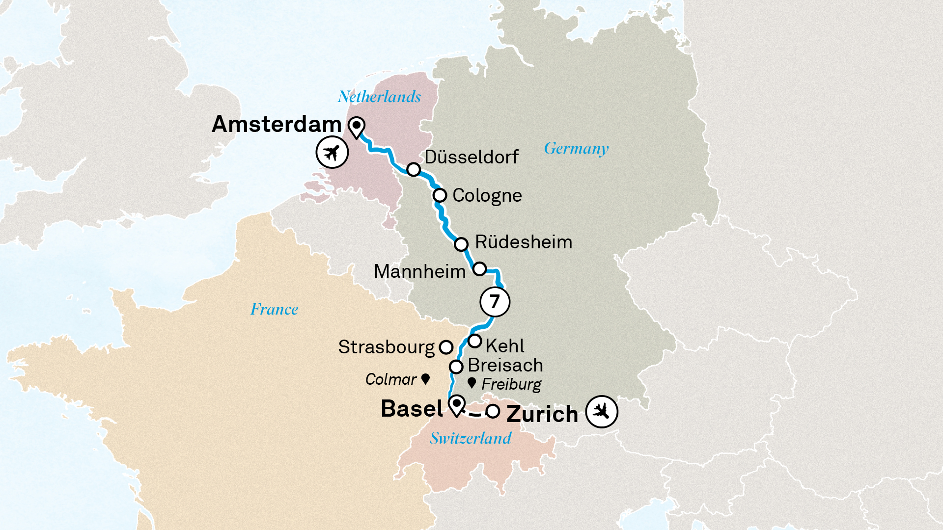 After a hearty breakfast, you will be transferred from your final port of Basel to Zurich airport for your onward or homebound flight.