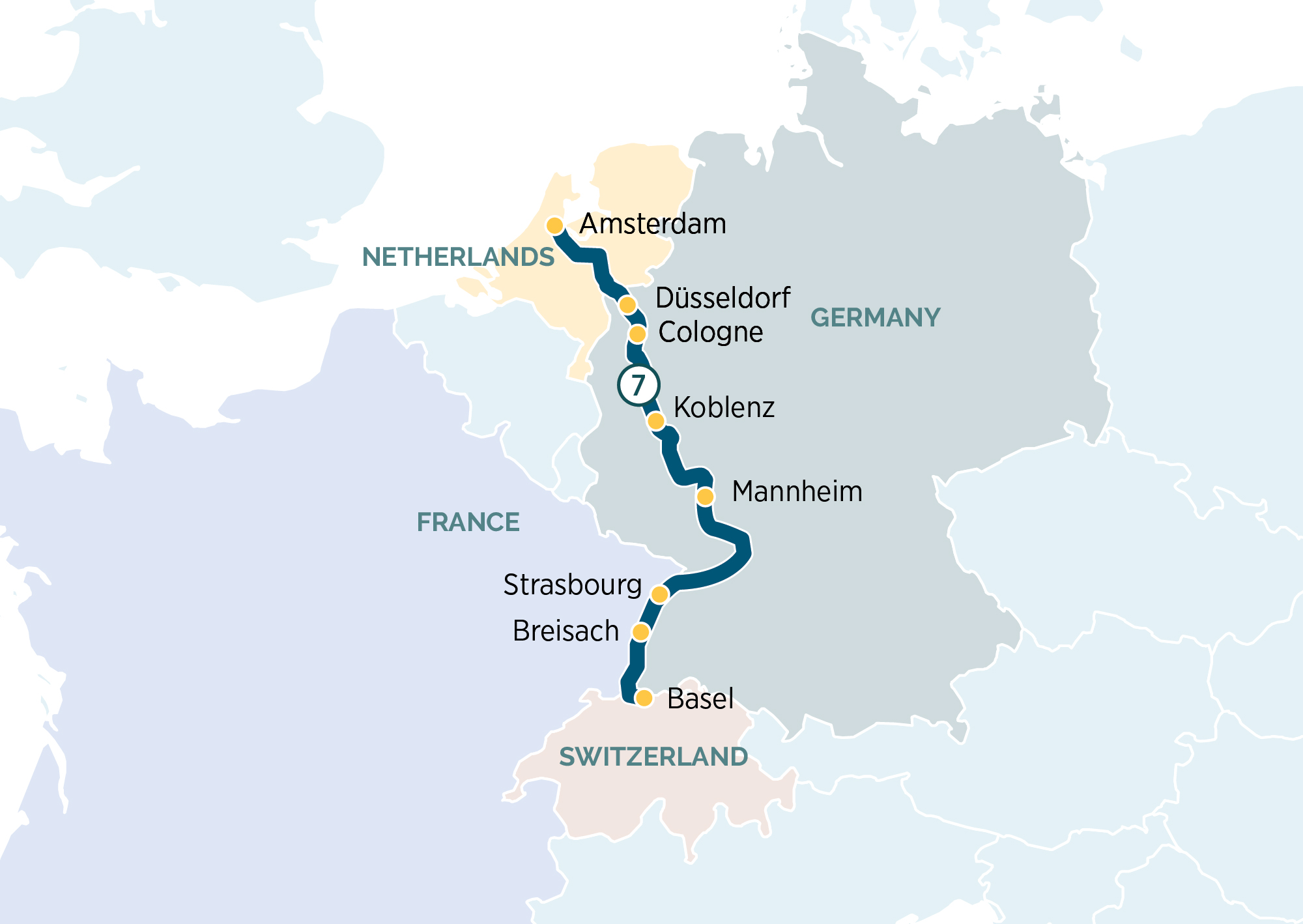 Enjoy sailing through the countryside and towards the Rhine River.
