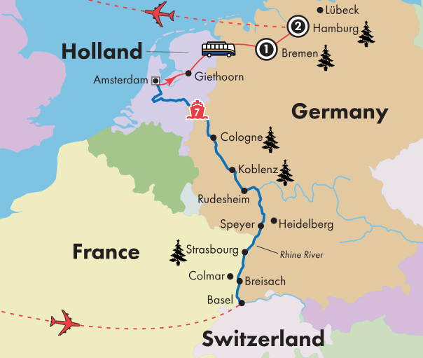 • Experience the charm of the world-famous Christmas markets in Strasbourg, Koblenz, Cologne, Bremen and Hamburg